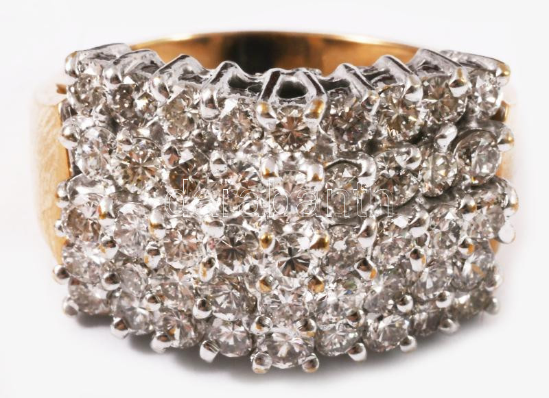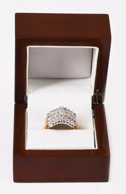 Koktélgyűrű. 14k arany, brillekkel, össz 1,35ct (45x0,03ct) jelzett m: 52, br 8,1g /// Cocktail ring. 14K gold, set with diamonds, total 1.35 ct (45 × 0.03 ct), hallmarked, size: 52, weight: 8.1 g