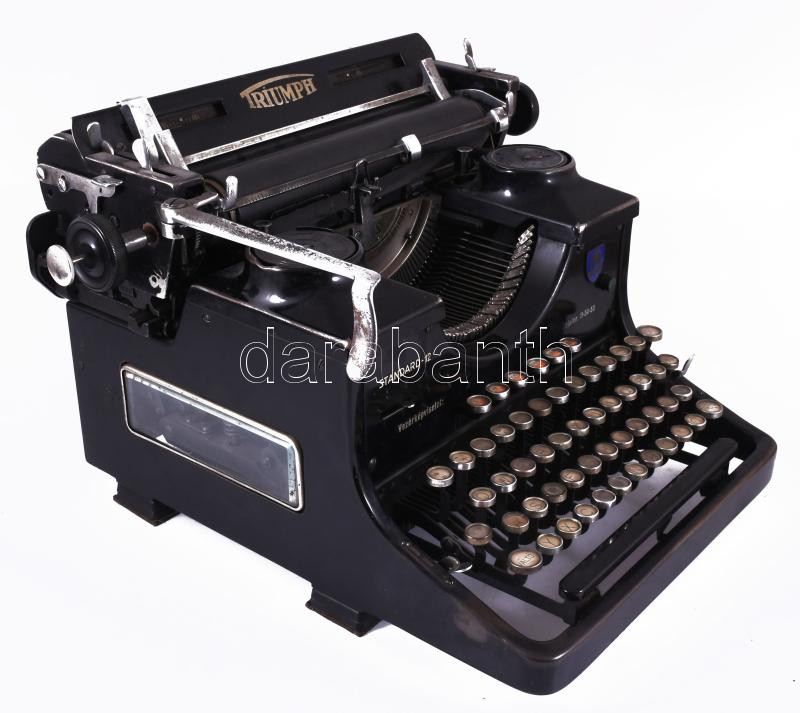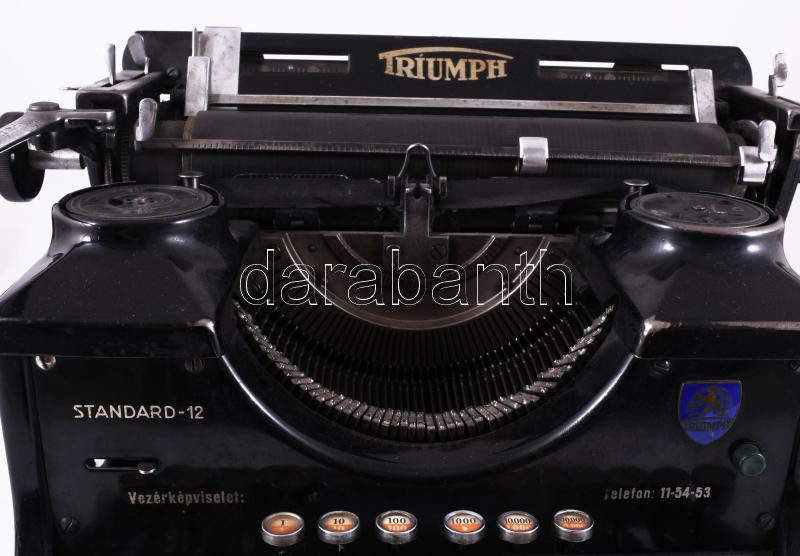 1937-1940 Triumph "Standatrd 12" írógép, magyar billentyűzettel, eredeti fazettált üvegeivel, 36x26 cm /// 1937?1940 Triumph 'Standard 12' typewriter, with Hungarian keyboard, original faceted glass panels, 36×26 cm /// KIZÁRÓLAG SZEMÉLYES ÁTVÉTEL, NEM POSTÁZZUK! / ONLY PERSONAL COLLECTION AT OUR OFFICE!