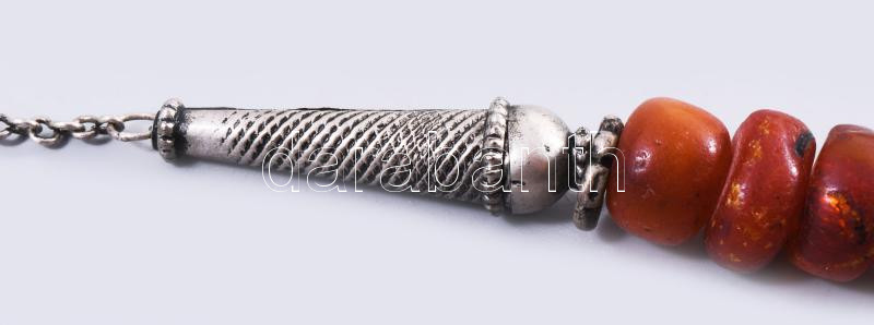 Nyakék. Jemen, 20. sz. első fele, zsidó ötvösmesterek munkája, lekerekített alakúra formált kopál szemek sodortszálas szerelékkel, h: cca 50 cm /// Necklace. Yemen, first half of the 20th century, made by Jewish silversmiths; rounded copal beads with twisted-wire mounts, length approx. 50 cm.