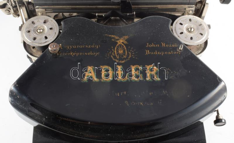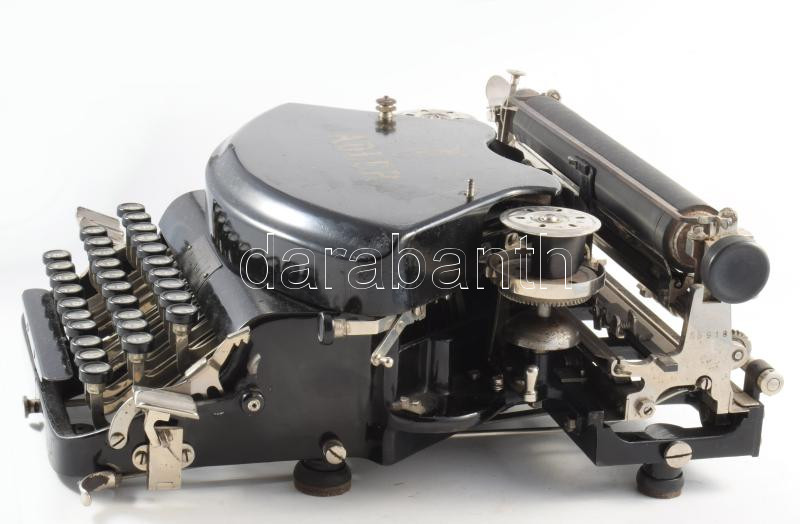 cca 1910 Adler Mod. No7. írógép. Rajta "Adler Magyarországi Vezérképviselője John Rezső Budapesten" felirattal, cca 35x35 cm /// cca 1910 Adler Model No. 7 typewriter. With the inscription 'Adler's Chief Representative in Hungary John Rezső in Budapest', approx. 35×35 cm