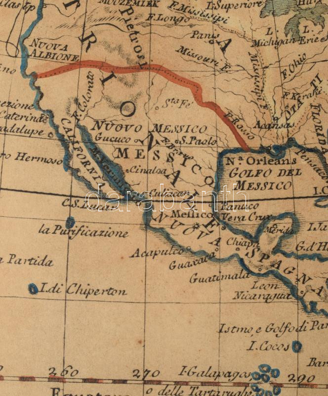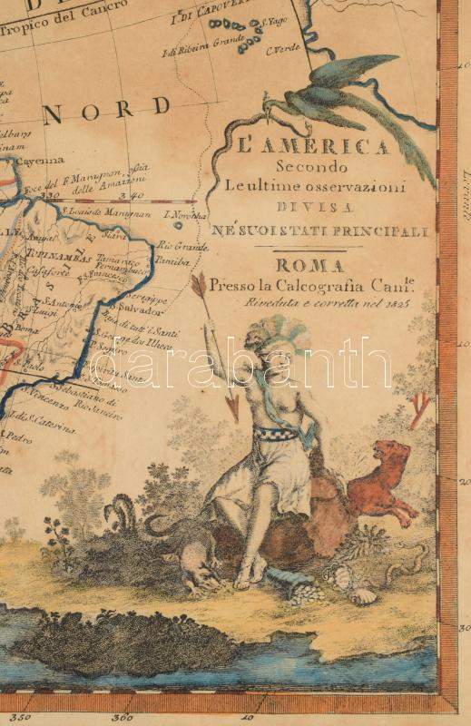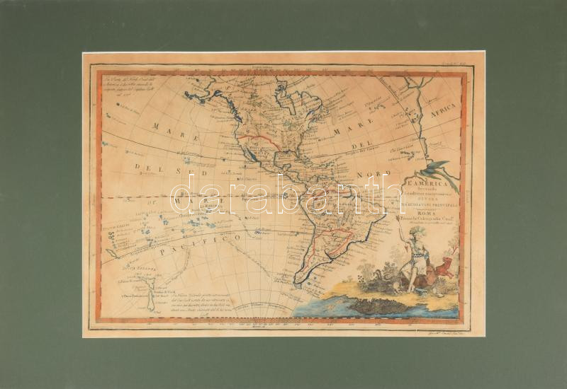 [Amerika és Újzéland térképe. ] 1825 L'America secondo le ultime osservazioni divisa ne' suoi stati principali. Giovanni Maria Cassini. Színezett rézmetszet. 45x33 cm Paszpartuban