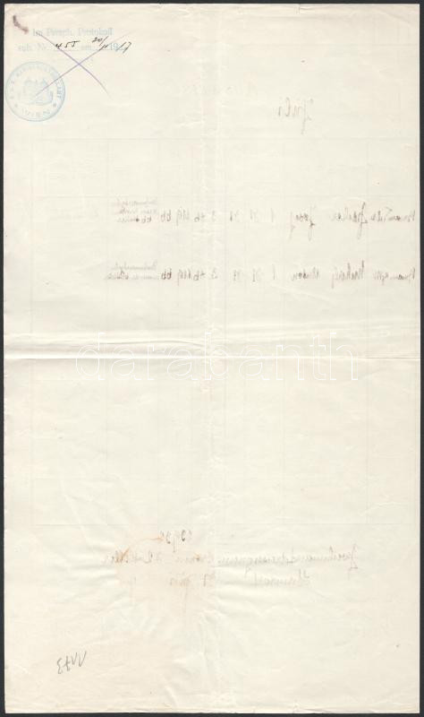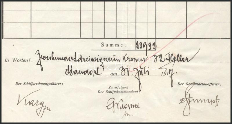 1917 Az S.M.S. Enns - Dunai Flottila monitor parancsnokának kézzel írt kimutatása fizetésekről, hajópecsétekkel