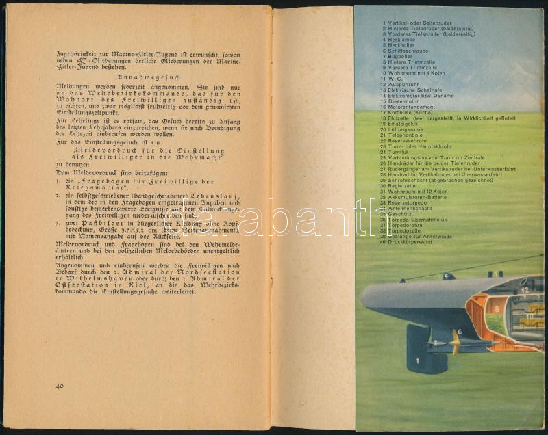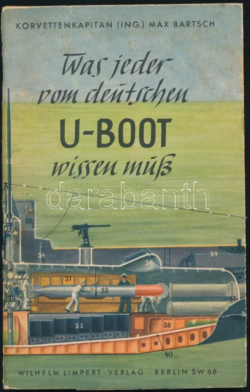 1939 Minden, amit a német tengeralattjárókról (U-Boot) tudni kell, írta Max Bartsch korvettkapitány, dekoratív borítóval, képekkel és rajzokkal illusztrálva, német nyelven, jó állapotban