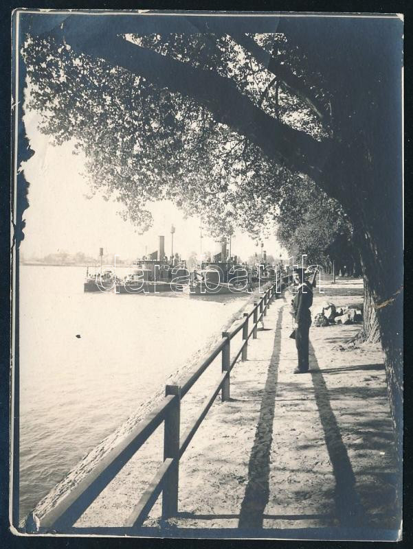 ca 1915 Az S.M.S. Körös és S.M.S. Szamos - Dunai Flottila monitorok a mólónál. Fénykép 7,5x 10 cm /