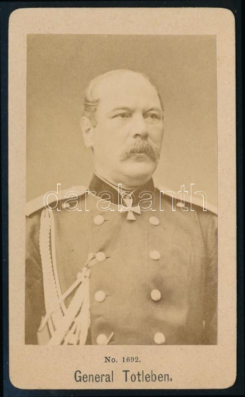 cca 1880 Eduard Totleben (Franz Eduard Graf von Tottleben / Eduárd Ivánovich Totlében) (1818-1884) német származású hadmérnök, az Orosz Császári Hadsereg tábornoka, vizitkártya, 10x6 cm // cca 1880 Eduard Totleben (Franz Eduard Graf von Tottleben / Eduárd Ivánovich Totlében) (1818-1884) German military engineer, general of the Imperial Russian Army, cdv photo, 10x6 cm