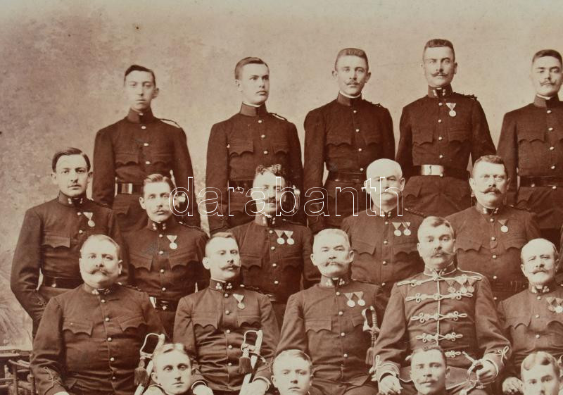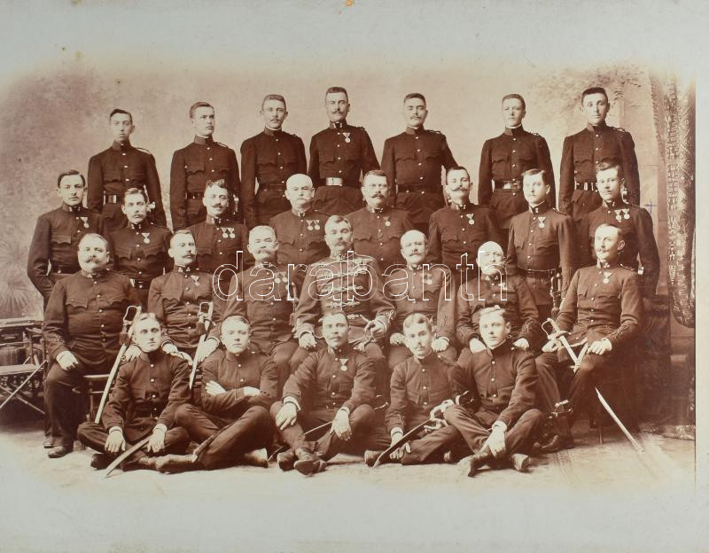 cca 1900 Nagyméretű katonai csoportkép, kabinetfotó paszpartuban, 37x2... https://www.darabanth.com/de/45-Gross-Auktion/45.1/Kunst-Dokumente-andere-Sammelgebiete/Militaria~18996/cca-1900-Nagymeretu-katonai-csoportkep-kabinetfoto-paszpartuban-37x29-cm3Cbr-3E-3Cbr-3E-3Cbr-3E~II3421921