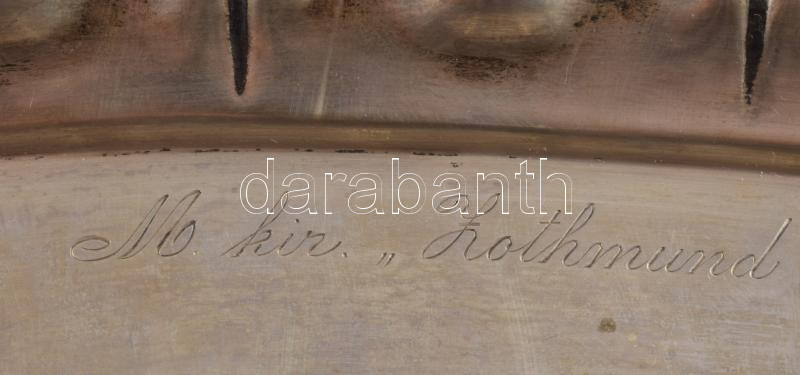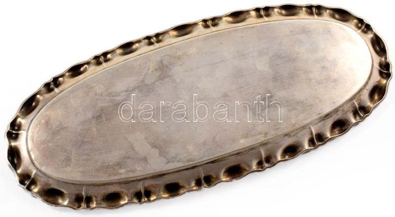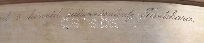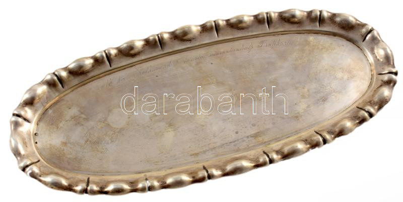 cca 1930-1940 M. kir. ,,Zothmund" 3. honvéd utászzászlóalj Tisztikara gravírozott felirattal ellátott ezüst (Ag) tálca, jelzett, nettó: 223 g, 33,5x14,5 cm