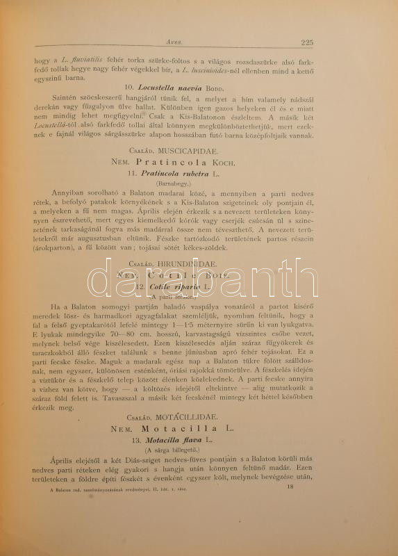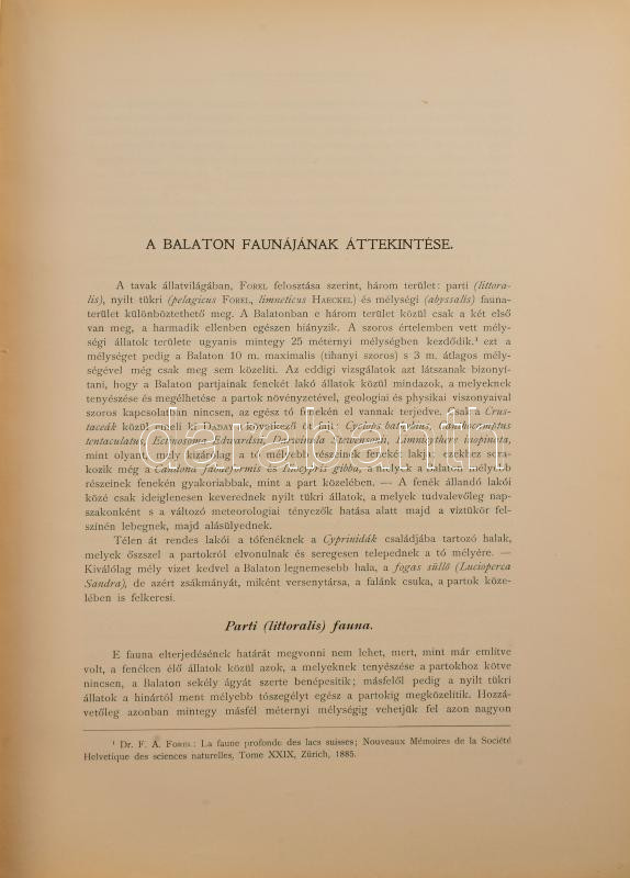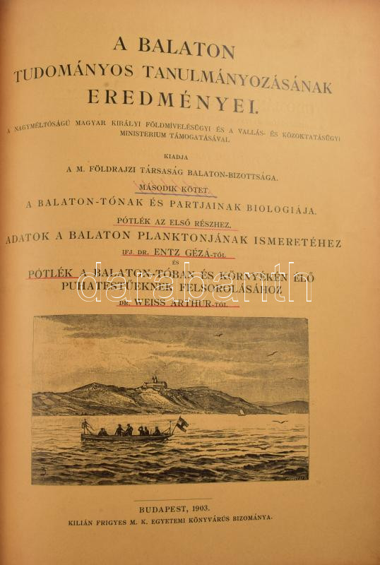 Weiss Arthur: Pótlék a Balaton tóban és környékén élő puhatestűeknek felsorolásához. A Balaton tudományos tanulmányozásának eredményei II. köt. 1. rész 1. pótlék. Bekötött papírborítóval. ;