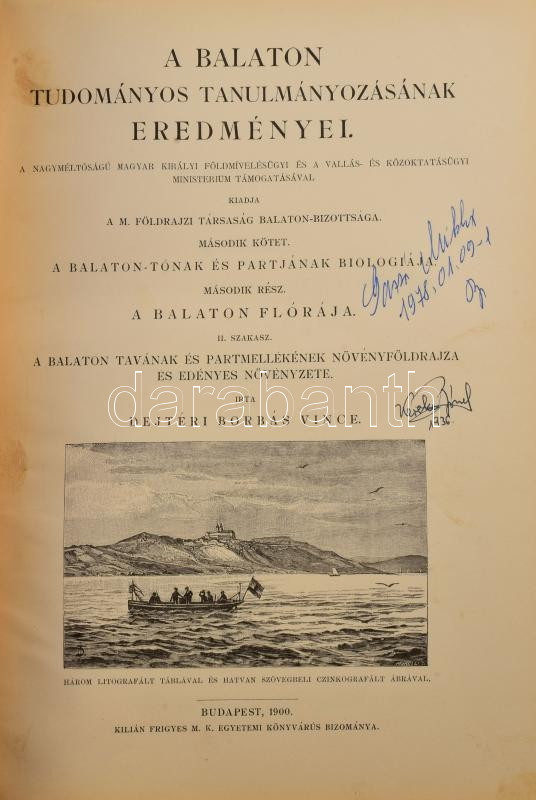 A Balaton tudományos tanulmányozásának eredményei II. köt.: A Balaton-tónak és partjának biologiája. II. rész: A Balaton flórája. II. szakasz.;