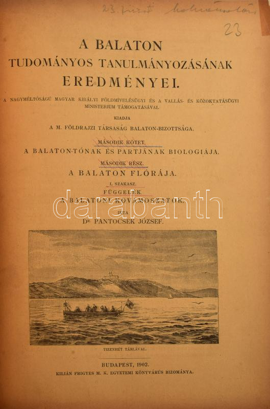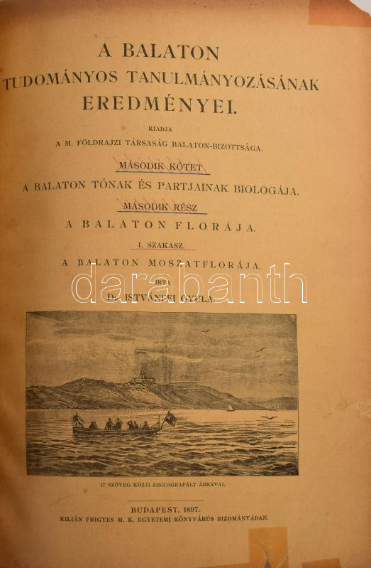 A Balaton tudományos tanulmányozásának eredményei II. köt.: A Balaton-tónak és partjának biologiája. II. rész: A Balaton flórája. I. szakasz és I. szakasz Függelék.;