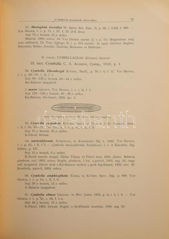 Pantocsek József: A Balatoni kovamoszatok. Kiadja: Magyar Földrajzi Társaság Balaton-Bizottsága.