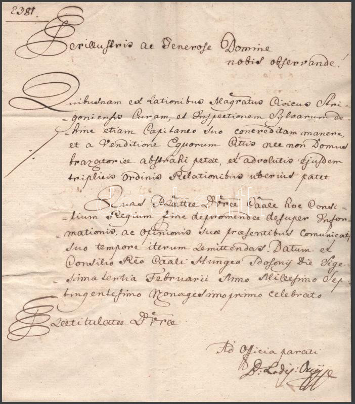 Beschreibung: 1791 Báró Orczy László főispán, kamarai másodelnök által aláírt levél