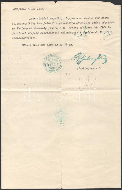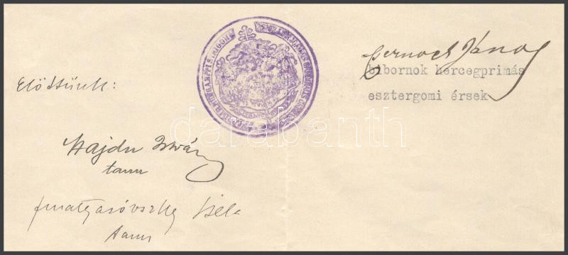 1918 Esztergom, Csernoch János bíboros, esztergomi érsek által aláírt ... https://www.darabanth.com/de/45-Gross-Auktion/45.1/Kunst-Dokumente-andere-Sammelgebiete/Signatur~18551/1918-Esztergom-Csernoch-Janos-biboros-esztergomi-ersek-altal-alairt-hivatalos-irat~II3447600