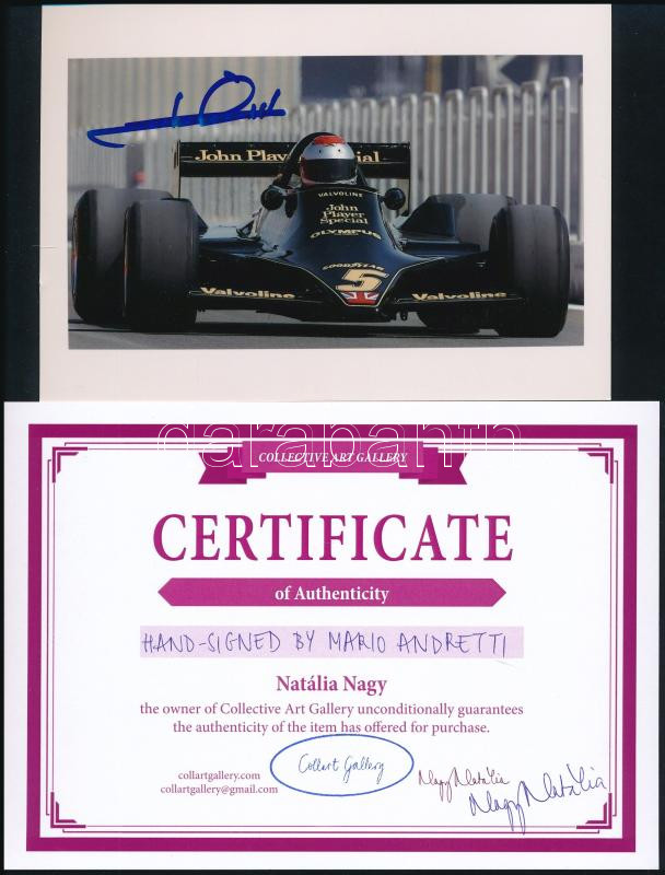 Mario Andretti aláírása Mario Andretti egy amerikai autóversenyző-legenda, aki a Formula-1 világbajnoki címét (1978), az Indianapolis 500-at (1969) és a Daytona 500-at (1967) is megnyerte, ezzel örökre beírva nevét a motorsport történetébe. Pályafutása során több mint 100 győzelmet aratott különböző versenysorozatokban, és mindmáig a versenyzés egyik legnagyobb ikonja.