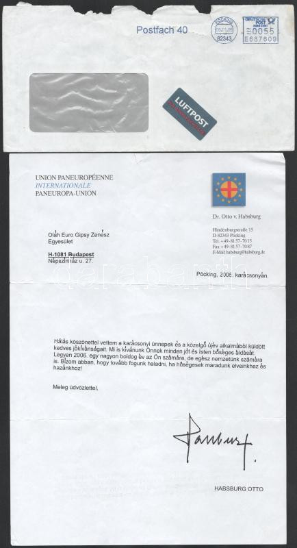 Beschreibung: Habsburg Ottó (1912-2011) trónörökös, politikus a Páneurópai Unió Elnökének aláírása