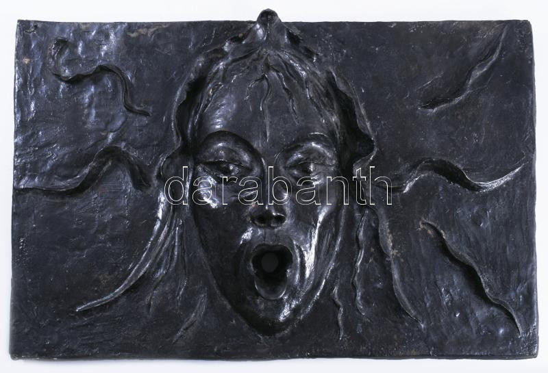 Horetzky (1969-): Medúza fej vízköpő. Patinázott bronz faliplakett, falikútnak is felszerelhető, cca 2005, jelzés nélkül, 28x47 cm. Proveniencia: az alkotó tulajdonából. /// Horetzky (1969-): Medusa Head Gargoyle. Patinated bronze wall plaque, can also be installed as a wall fountain, circa 2005, unsigned, 28 x 47 cm. Provenance: from the artist's own collection. /// KIZÁRÓLAG SZEMÉLYES ÁTVÉTEL, NEM POSTÁZZUK! / ONLY PERSONAL COLLECTION AT OUR OFFICE!