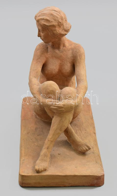 Rubletzky Géza (1881-1970): Női akt. Terrakotta, jelzett. talpazaton kis repedéssel. m: 30 cm sz: 25 cm /// Géza Rubletzky (1881-1970): Female Nude. Terracotta, signed. Small crack on the base. Height: 30 cm, width: 25 cm