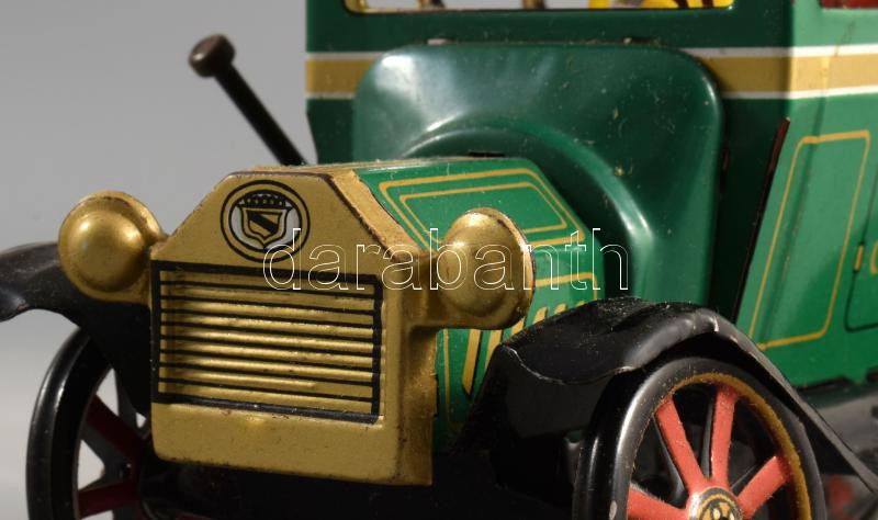 cca 1960/70 Oldtimers Lever Action Motor No.9 lemezjáték. Japán, fém, műanyag, eredeti, sérült dobozában, 14x10 cm /// c. 1960/70 Oldtimers Lever Action Motor No.9 tin toy. Japan, metal and plastic, in its original damaged box, 14x10 cm.