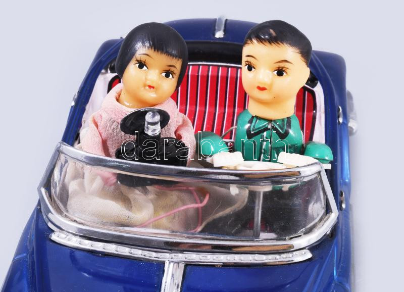 cca 1960/70 Pohotoing on Car ME 630 lemezjáték. Elemmel működik, teljes, hibátlan, működik, eredeti, kissé sérült dobozával, h: 31 cm /// cca. 1960/70 Pohotoing on Car ME 630 tin toy. Battery-operated, complete, flawless, working, with its original but slightly damaged box, length: 31 cm