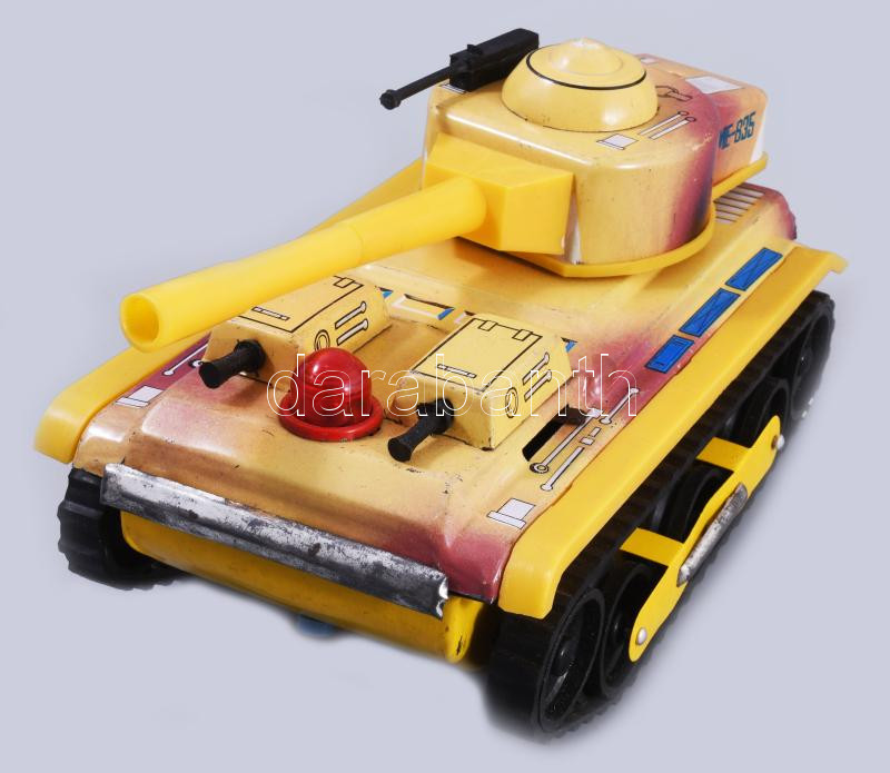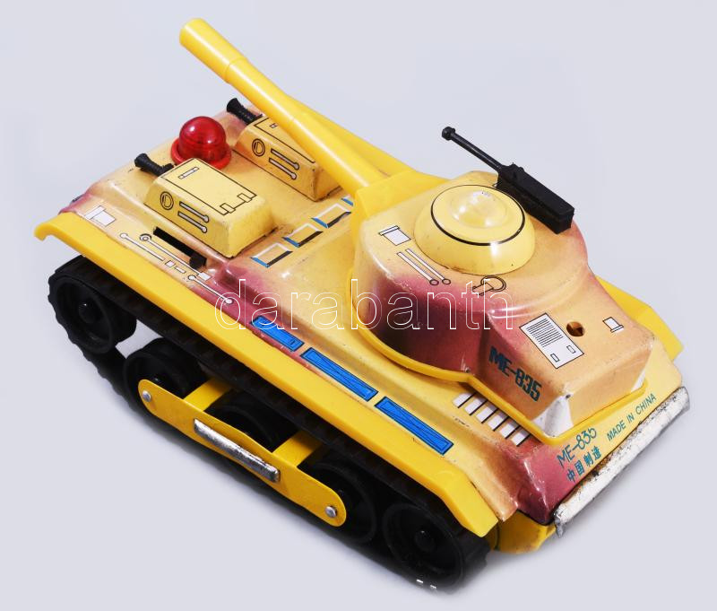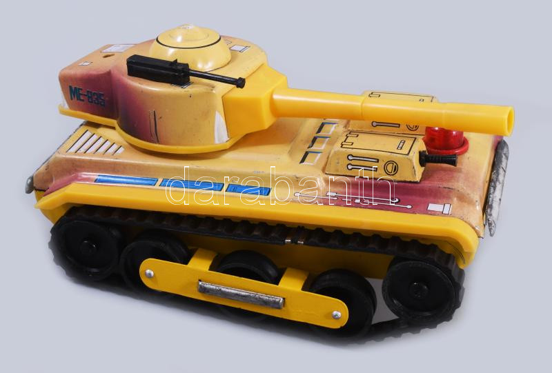 cca 1965 ME 835 Tank lemezjáték. Kína, fémlemez, műanyag, elemmel működik, jó állapotban, eredeti, kissé sérült dobozában, 23x12 cm /// cca 1965 ME 835 Tank tin toy. China, tinplate and plastic, battery-operated, in good condition, in its original slightly damaged box, 23×12 cm