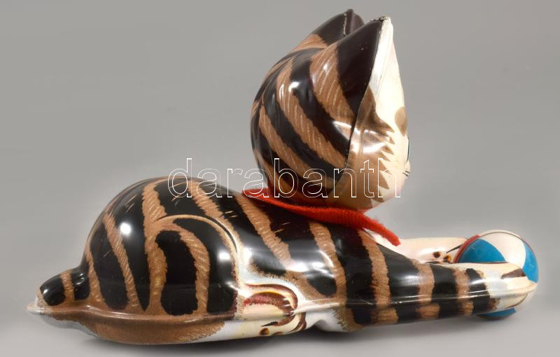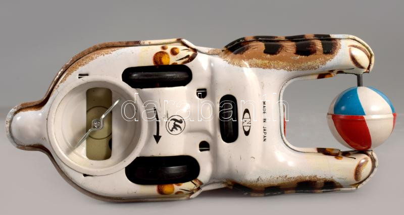 cca 1975 Nakayama Wind Up Puzzle Cat Tin Toy, Japan, tinplate construction, wind-up mechanism, with original box, size: 14 × 9 cm.