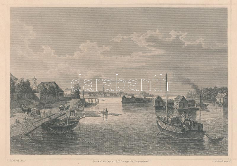 Beschreibung: 1853 Ludwig Rohbock (1820-1883) - J. Umbach: Óbuda s a hajómalmok, acélmetszet, jelzett a metszeten, jó állapotban, 17×25 cm