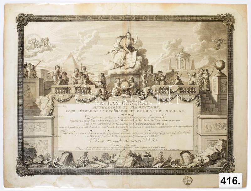 Maclot, Jean Charles (1728-1805). Atlas general methodique et elementaire, pour l'etude de la geographie et de l'histoire moderne adapte a ... (P., Desnos, 1770 ) c. atlaszának címlapja. Rézmetszet.