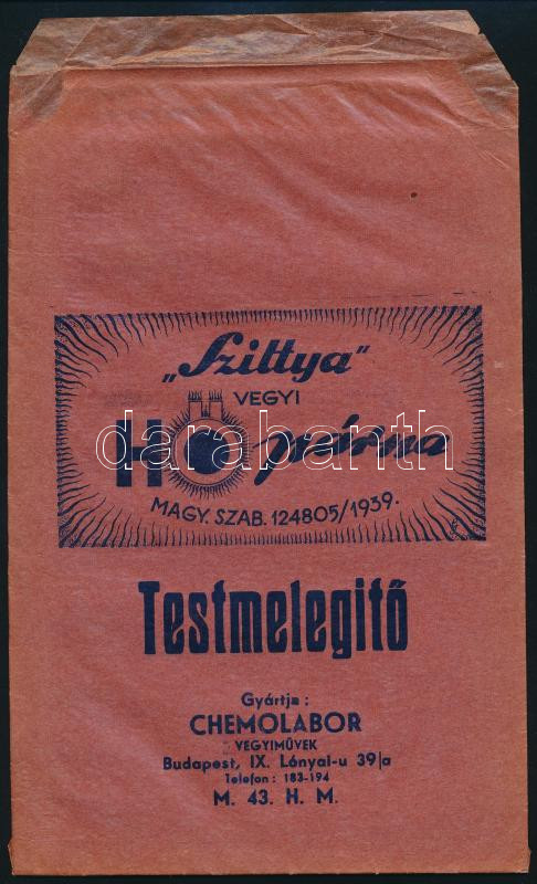 1939 Szittya, vegyi hőpárna Chemolabor, reklám boríték, katonai felhas... https://www.darabanth.com/de/45-Gross-Auktion/45.1/Kunst-Dokumente-andere-Sammelgebiete/Werbungen~18995/1939-Szittya-vegyi-hoparna-Chemolabor-reklam-boritek-katonai-felhasznalasu-17x28-cm~II3421735