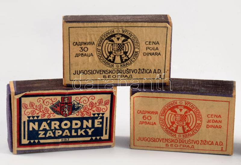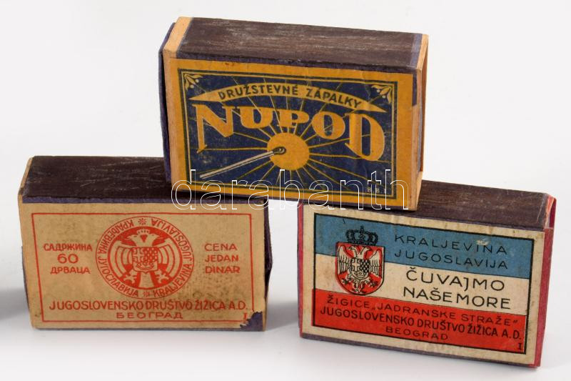 cca 1920-1940 7 db jugoszláv és csehszlovák gyufásdoboz, változó állap... https://www.darabanth.com/de/45-Gross-Auktion/45.1/Kunst-Dokumente-andere-Sammelgebiete/Werbungen~18995/cca-1920-1940-7-db-jugoszlav-es-csehszlovak-gyufasdoboz-valtozo-allapotban~II3450014