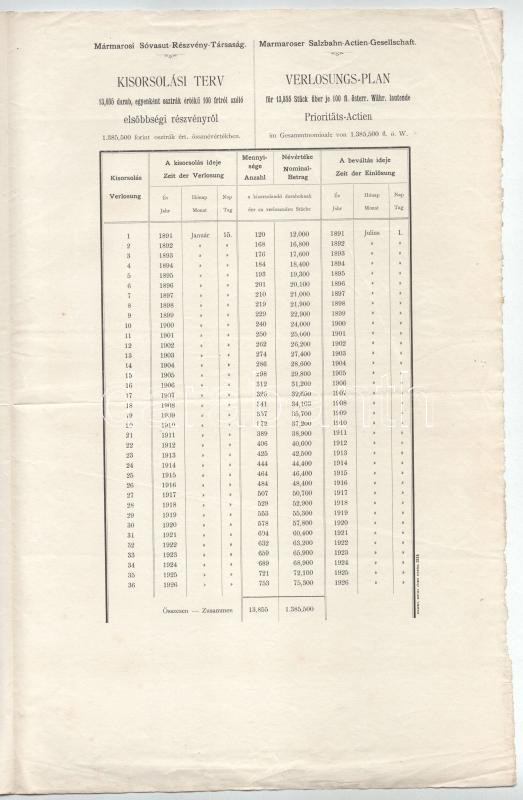 Hungary 1890. Budapest "Máramaros Salt Railway Company" preference share of 100 Forint, without serial number, with embossed stamp C:F