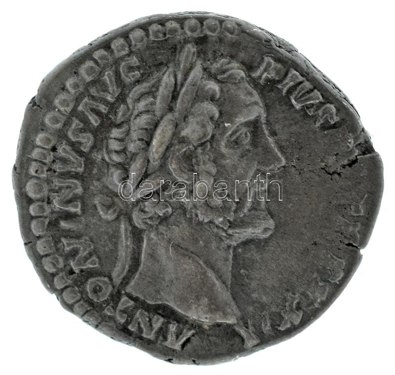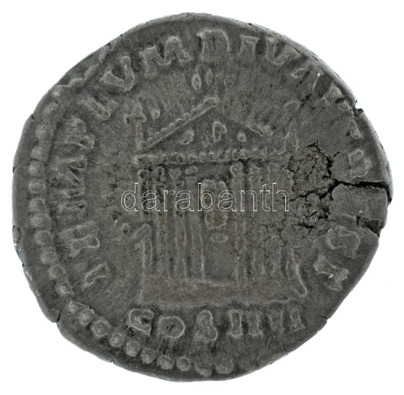 Római Birodalom 158-159 / Antoninus Pius / Róma / Denarius Ag (3,35g) T:XF,VF patina, ü., rep. / Roman Empire 158-159 / Antoninus Pius / Rome / Denarius Ag "ANTONINVS AVG PIVS PP TR P XXII / TEMPLVM DIV AVG REST - COS IIII" octastyle temple with figures within (3,35g) C:XF,VF patina, ding, crack