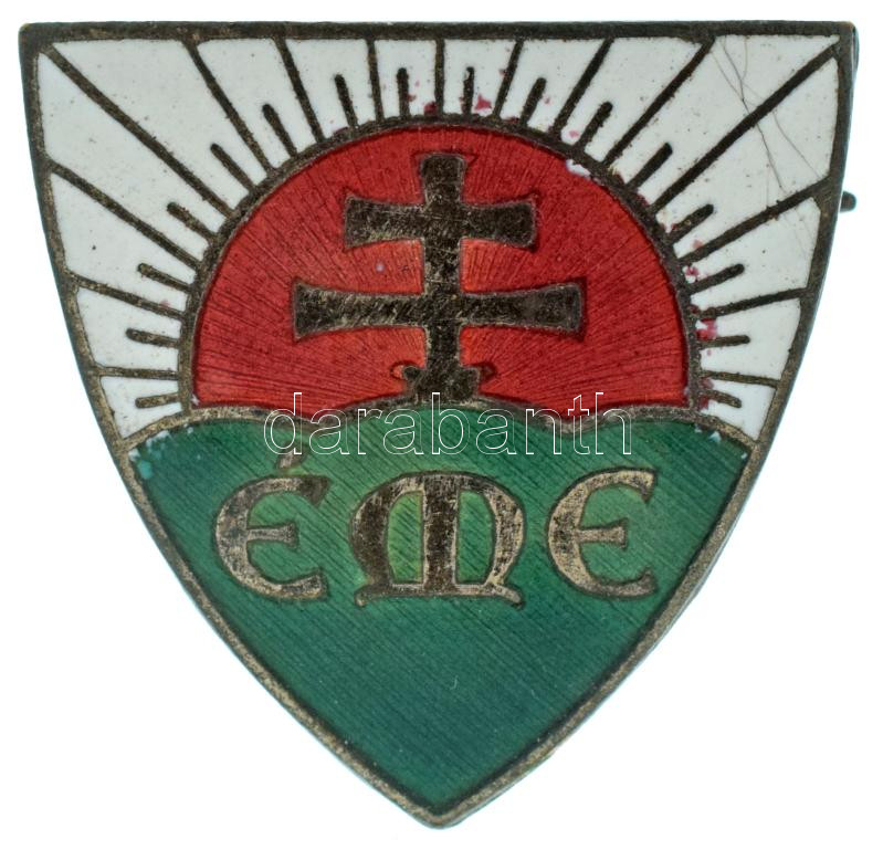 1920-1930 k. "ÉME (Ébredő Magyarok Egyesülete)" zománcozott bronz jelvény (24x23mm) T:XF kis zománchiba / Hungary 1920-1930 k. "ÉME (Ébredő Magyarok Egyesülete - Association of Awakening Hungarians)" enamelled bronze badge (24x23mm) C:XF small enamel error