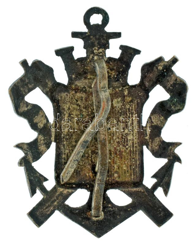 Lengyelország 1940 k. "Varsói Evezős Társaság" zománcozott fém jelvény (22x29mm) T:AU patina / Poland around 1940. "Warsaw Rowing Society" enameled metal badge (22x29mm) C:AU patina