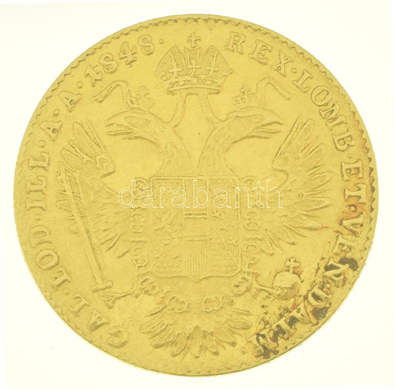 Ausztria 1848E Dukát "I. Ferdinánd" Gyulafehérvár (3,49g/0.986) T:AU,XF / Austria 1848E Ducat "Ferdinand I" Alba Iulia (3,49g/0.986) C:AU,XF