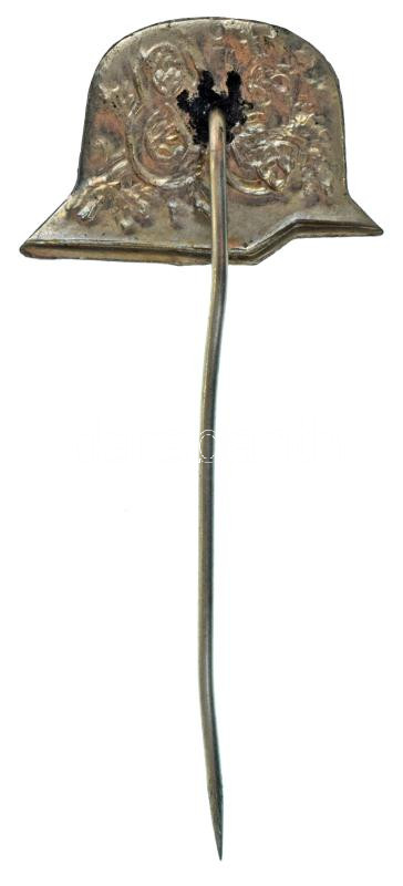 Osztrák-Magyar Monarchia ~1917. A Császári és királyi 38. gyalogezred rohamsisak alakú, festett tombak jelvénye, fekete zománcozott számokkal, függőleges tűvel. (15x22mm) T:AU halvány patina