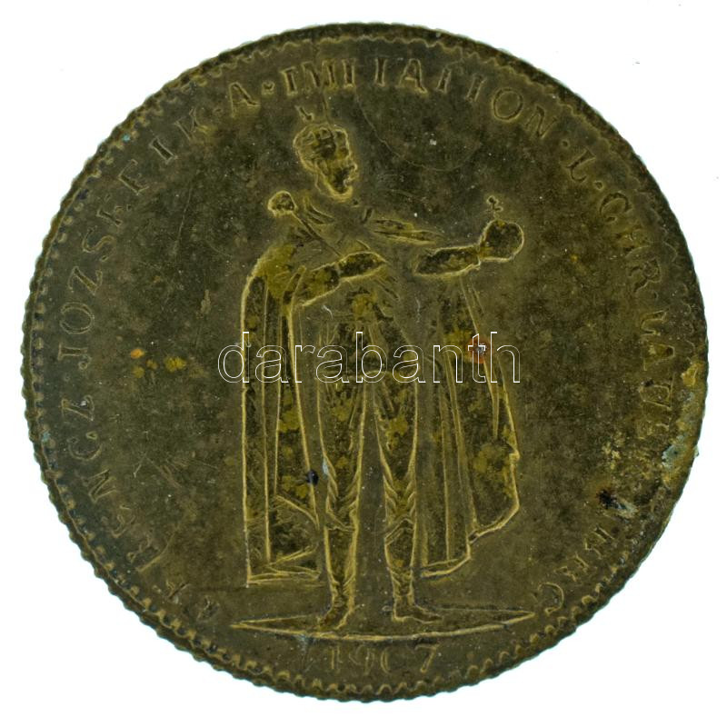 1907. 10K bronz "Ferenc József" mini játékpénz (13mm) "FERENCZ JOZSEFIK A IMITATION L CHR LAUER NBRG" T:VF / Hungary 1907. 10 Korona bronze "Franz Joseph" miniature play money (13mm) "FERENCZ JOZSEFIK A IMITATION L CHR LAUER NBRG" C:VF