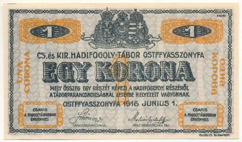 Hungary / Ostffyasszonyfa / POW Camp 1916.06.01. 1 Krone with Arabic series- and serial number "32 0692", with "MS" prefix C:UNC