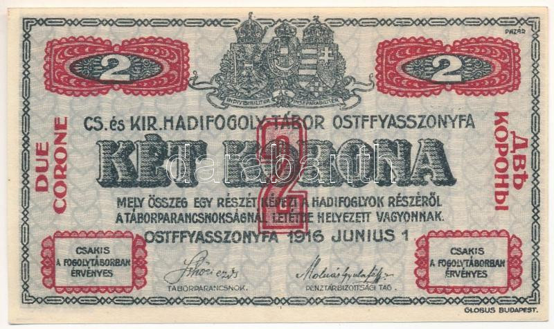 Hungary / Ostffyasszonyfa / POW Camp 1916.06.01. 2 Krone with Arabic series- and serial number "25 0919", with "MS" prefix C:UNC