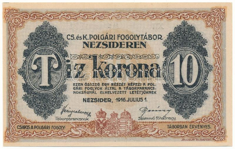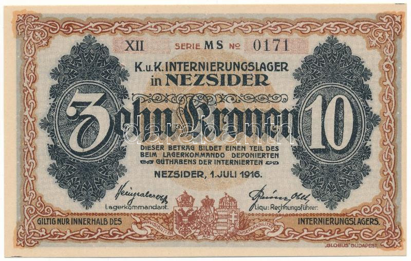 Nezsider / Hadifogolytábor 1916. 10K római sorozat- és arab sorszámmal "XII 0171", "MS" jelzéssel T:UNC,AU /