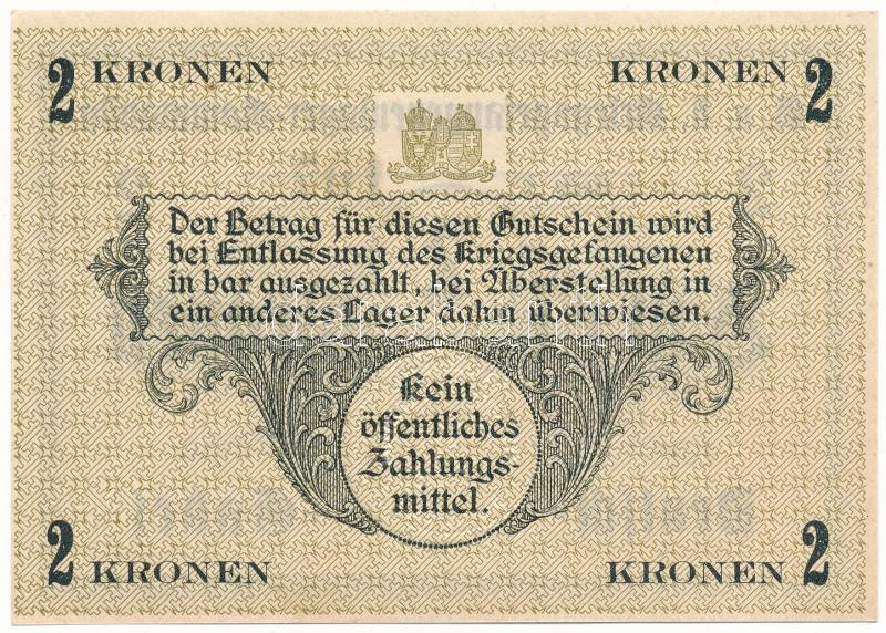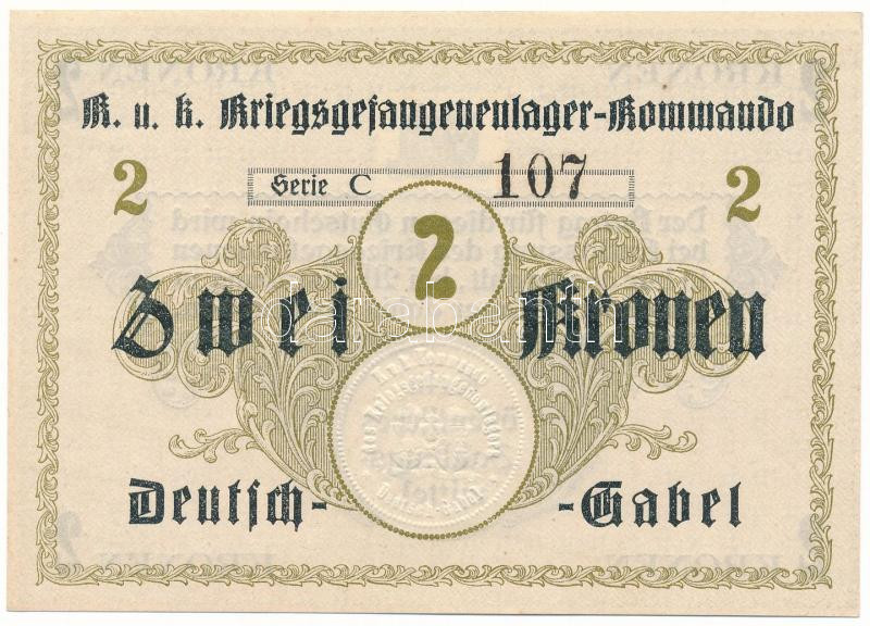 Austro-Hungarian Monarchy / Deutsch Gabel (Jablonné v Podjestsdí) POW camp ~1914-1918. 2 Krone "C 107" with embossed stamp C:UNC,AU