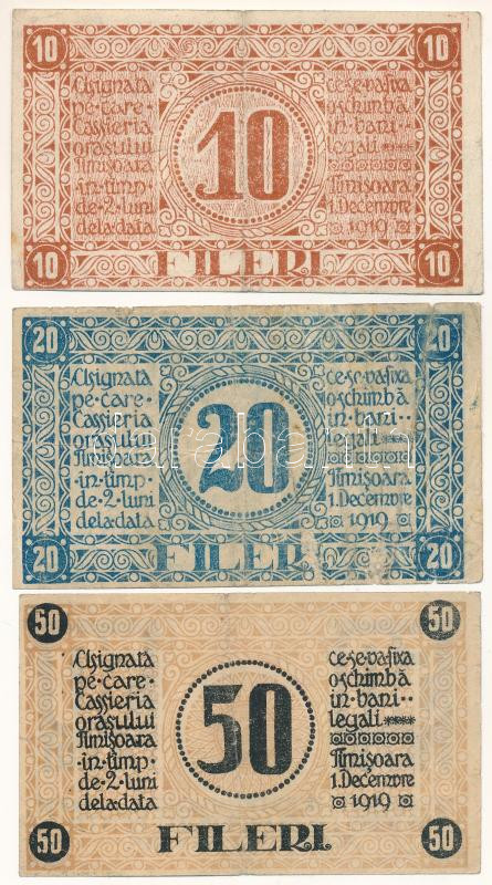 Romania / Timişoara 1919. 10 Fileri + 20 Fileri + 50 Fileri local money / necessity money (notgeld) C:F,VG