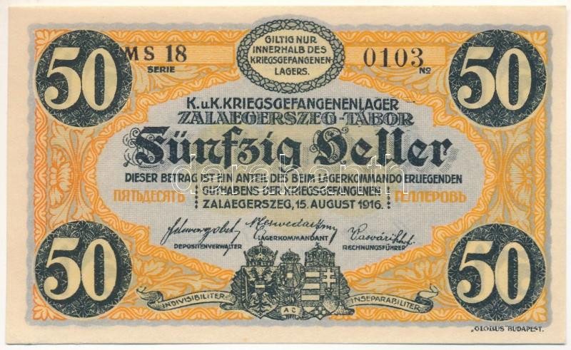 Hungary / Zalaegerszeg / POW camp 1916.08.15. 50 Heller with arabic serial numbers "18 0103" and "MS" prefix C:UNC