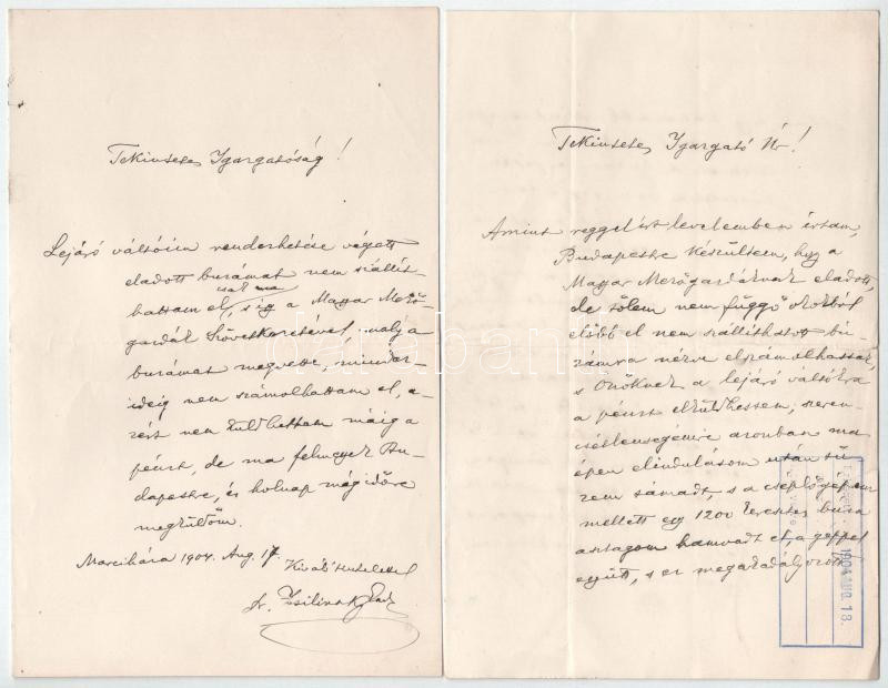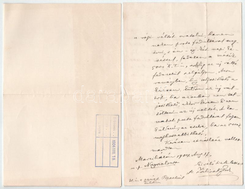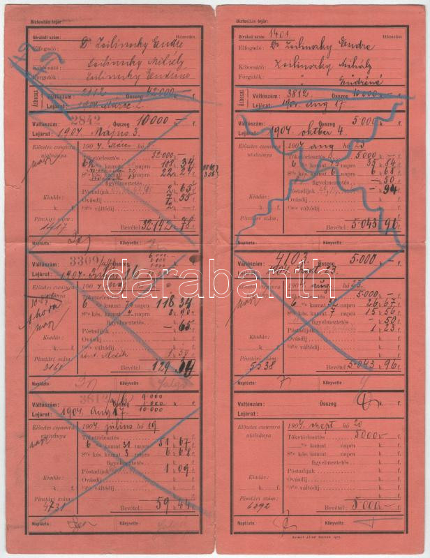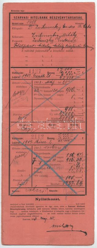 Dr. Zsilinszky Endre (1852-1919) vegyészmérnök, békéscsabai főgimnáziumi tanár, Bajcsy-Zsilinszky Endre édesapjának 1903. és 1904. évi 42.000K értékű váltója, illetve azzal kapcsolatos levelezése. A váltó elfogadója Dr. Zsilinszky Endre, a váltó kibocsátója Zsilinszky Mihály.