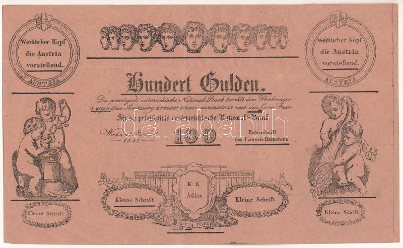 1841. 100G Formuláre barackszínű papíron, egyoldalas T:F / Hungaryr 18... https://www.darabanth.com/de/45-Gross-Auktion/45.1/Numismatik/Ungarische-Banknoten~18696/1841-100G-Formulare-barackszinu-papiron-egyoldalas-TF-Hungaryr-1841-100-Gulden-formulare-o~II3448389