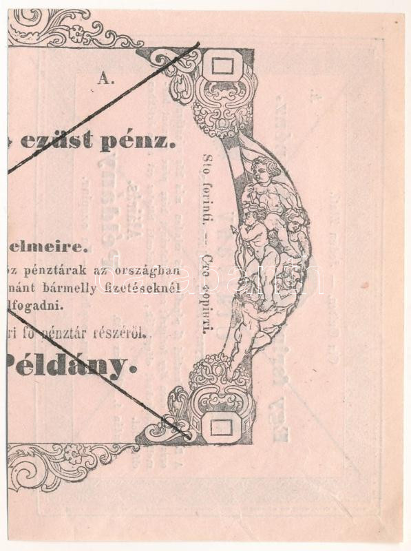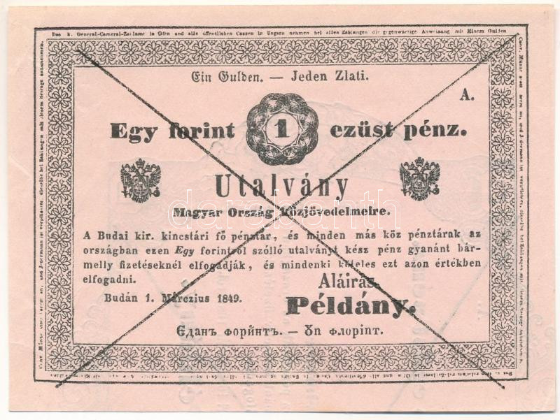 1849. 1Ft, hátoldalán 100Ft részlet "Almássy" német nyelvű formulare ívrész T:AU,XF hajtatlan, sarokhajlások / Hungary 1849. 1 Gulden, on the back with a part of 100 Gulden "Almássy" formulare C:AU,XF unfolded, folded corners