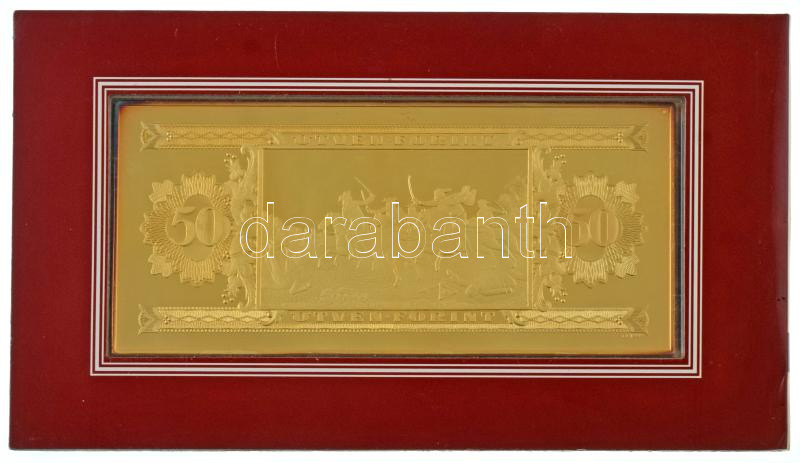 Beschreibung: 1989. 50Ft aranyozott Ag bankjegyveret (217,73g/7 uncia/0.999/70x154mm) + 1975. 50Ft "D 016 092374" karton díszcsomagolásban T:PP,UNC kis patina / Hungary 1989. 50 Forint gilt Ag banknote plaque (217,73g/7 uncia/0.999/70x154mm) + 1975. 50 Forint "D 016 092374" in cardboard display case C:PP,UNC small patina