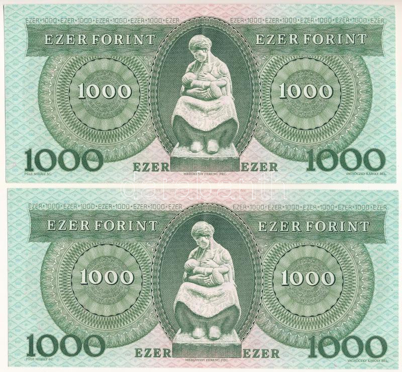 1996. 1000Ft (2x) sorszámkövetők "E 98563288 - E 98563289" T... https://www.darabanth.com/de/45-Gross-Auktion/45.1/Numismatik/Ungarische-Banknoten~18696/1996-1000Ft-2x-sorszamkovetok-E-98563288-E-98563289-TXF-Hungary-1996-1000-Forint-2x-~II3434931