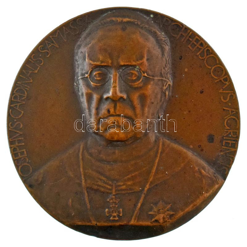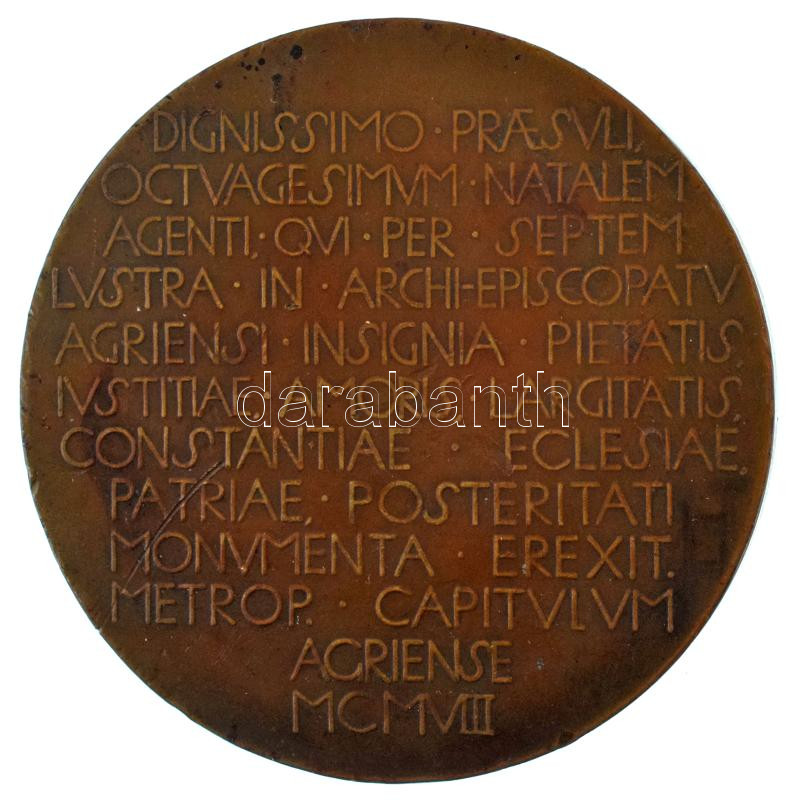 Hungary 1908. "Archbishop Samassa from Eger" commemorative bronze, double-sided, struck medallion. "IOSEPHVS CARDINALS SAMASSA ARCHIEPISCOPVS AGRIENSIS / DIGNISSIMO PRAESVLI OCTVAGESIMVM NATALEM AGENTI QVI PER SEPTEM LVSTRA IN ARCHI-EPISCOPATV AGRIENSI INSIGNIA PIETATIS IVSTITIAE AMORIS LARGITATIS CONSTANTIAE ECLESIAE PATRIAE POSTERITATI MONVMENTA EREXIT METROP CAPITVLVM AGRIENSE MCMVIII." Sign.: Fülöp Beck Ötvös (56mm) C:XF,VF scratched