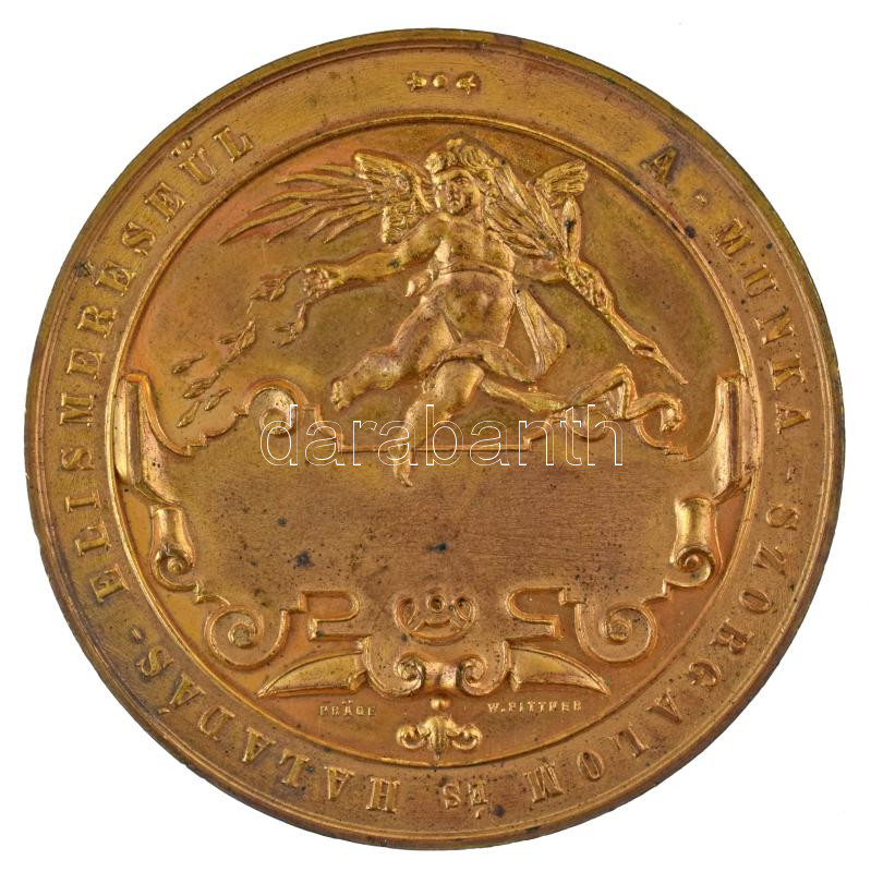 Hungary ND "In recognition of Work- Diligence- and Progress " two-sided gilded bronze award medal. Sign.: "W. PITTNER" (55mm) C:AU,XF, gilding slightly worn