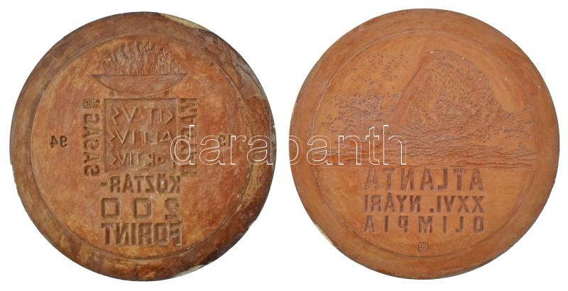 1994. 200Ft "XXVI. Nyári Olimpia Atlanta 1994" érmetervezet gipsz előlapi és hátlapi NEGATÍV nagyminta. Csak próbaveret formában létezik (160mm) T:AU,XF ph.